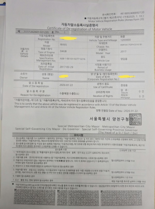 그전에 번호판 매도에 필요한 서류들을 준비해서 보내드렸고
