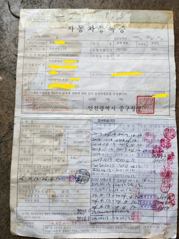 이 번 이전의 매수인이신 홍사장님은 결혼 하신지 얼마 안되셨는지 영업용 넘버 장착 하러 오실때