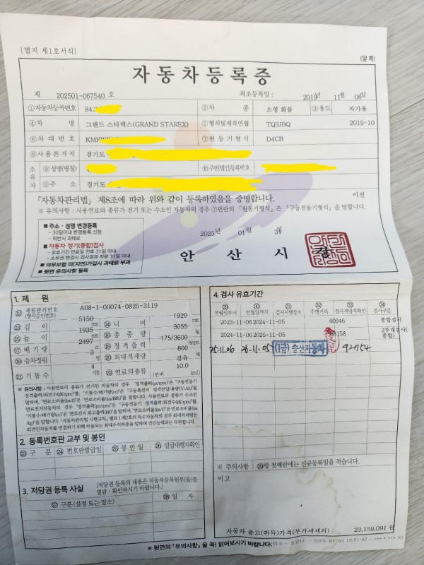 26년01월17일[노란번호판 장착 완료] 실제 번호판 구매 후기입니다
