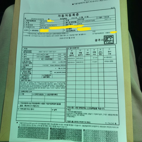 운수회사 임대 넘버를 사용 하시다가  반납하시고 개인 이전 하여 드렸습니다..