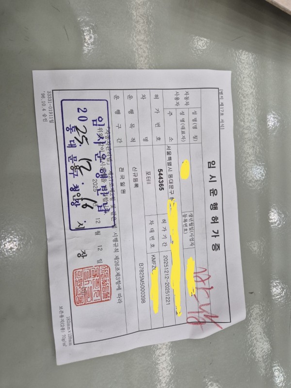 고양시의 용달 넘버를 서울 동대문구로 이전하여 드렸습니다...