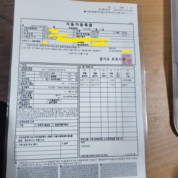 25년 12월 중순에 서울의 용달 넘버를 경기도 포천으로 이전 마무리 하여드렸는데,