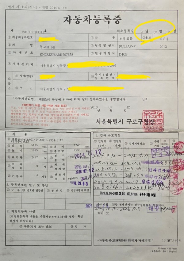파주의 용달 넘버를 성북구로 이전하여 드렸습니다.