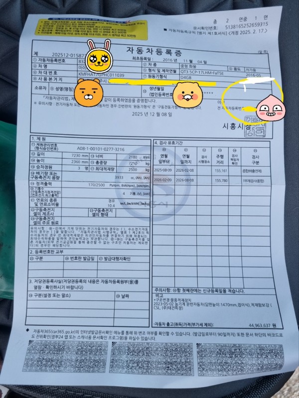청주의 개별넘버를 시흥으로 이전였습니다...