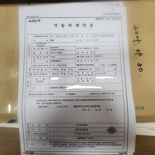 매수인님은 대전에서 우체국 택배를 하시기 위해 신차를 구매하셨구요..
