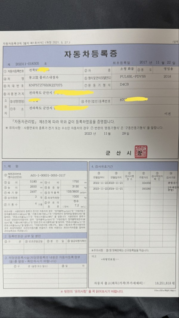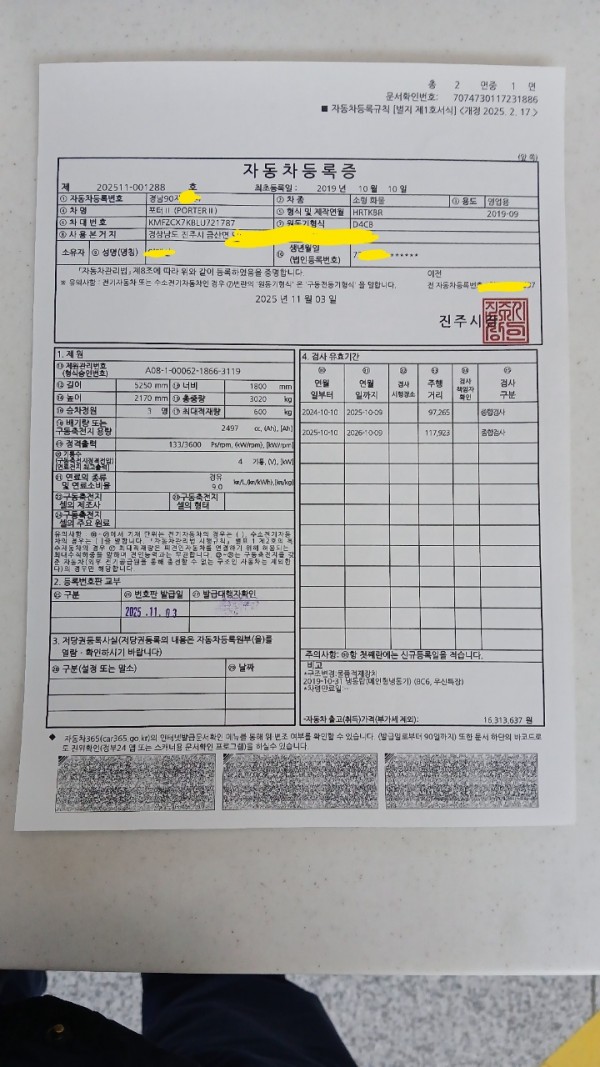 진주라는 지역의 특성상 용달 넘버가 많치 않어서, 인허가 승인을 3일 만에