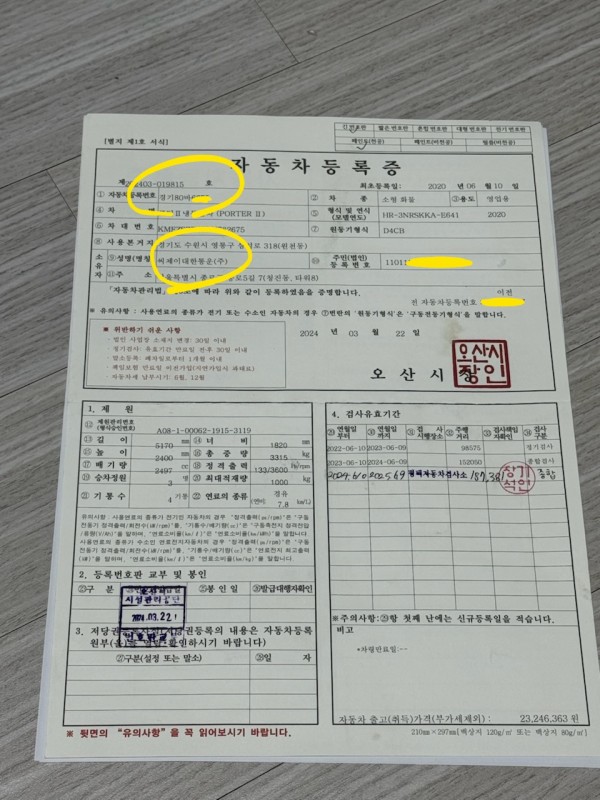 이사님을만나뵙고 영업용번호판을 오늘가져왔습니다