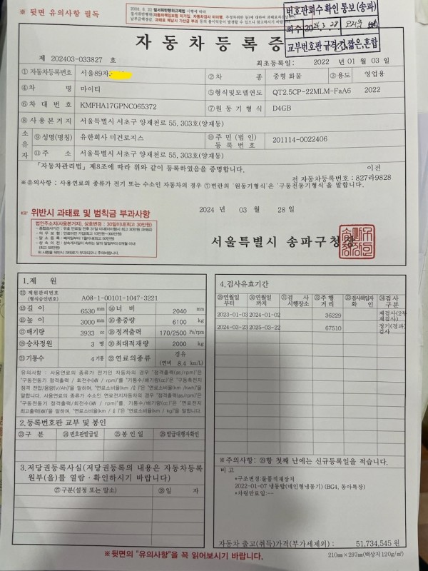 운수회사 임대 넘버를 사용 하시다가  반납하시고 개인 이전 하여 드렸습니다..