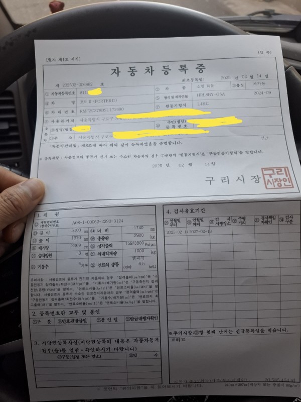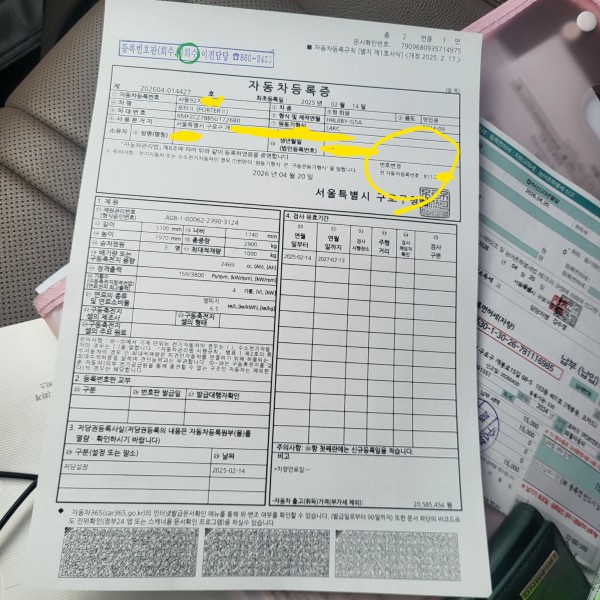 안산의 용달 넘버를 서울 구로로 이전 하였습니다..