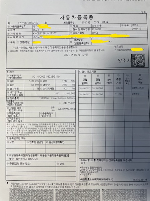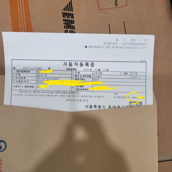 25년 12월 초에 용달 넘버를 팔고 싶으시다고 하셔서 재 판매를 하시게 된 케이스입니다..