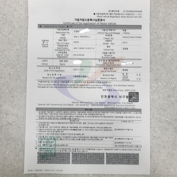 인천 강화의 용달 넘버를 같은 인천의 서구로 이전 하여 드렸습니다...