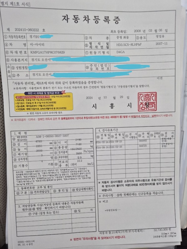 1톤 영업용번호판 구입 후기입니다 H 8a8c0845