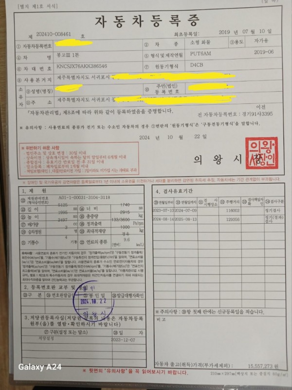 1톤 영업용번호판 구입 후기입니다 H 8a8c0845