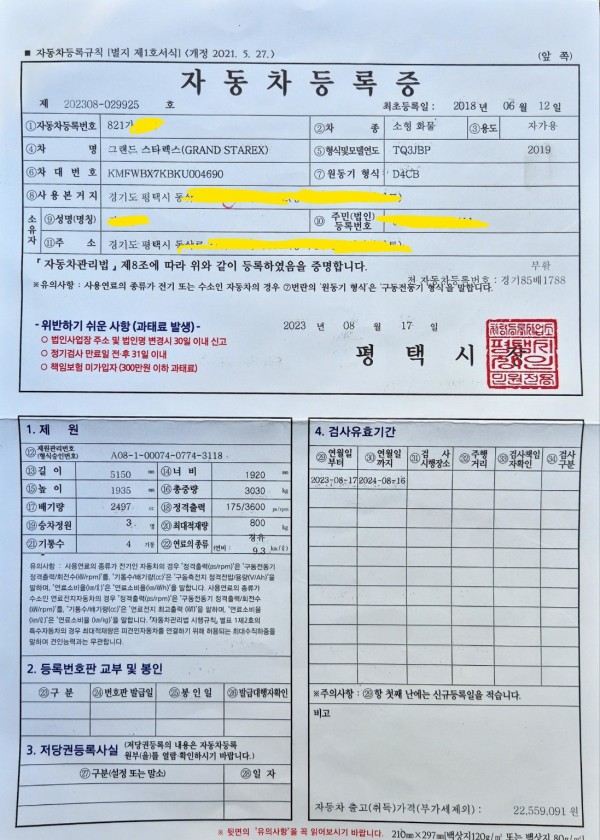 인천의 용달 넘버를 평택으로 이전하여 드렸습니다...
