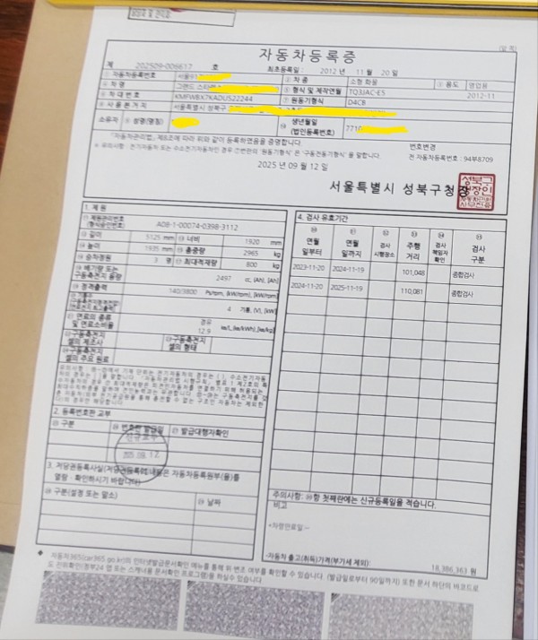 부산의 용달 넘버를 서울 성북구로 이전하였습니다..