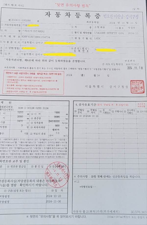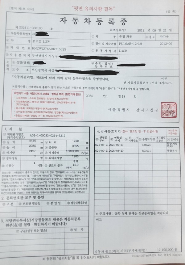 아버님의 넘버는 서울 강서구로 이전 잘 하여 드렸습니다.