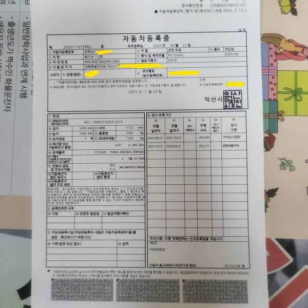 25년 11월 21일 개인용달 구매후기입니다(11월20일 익산에서)