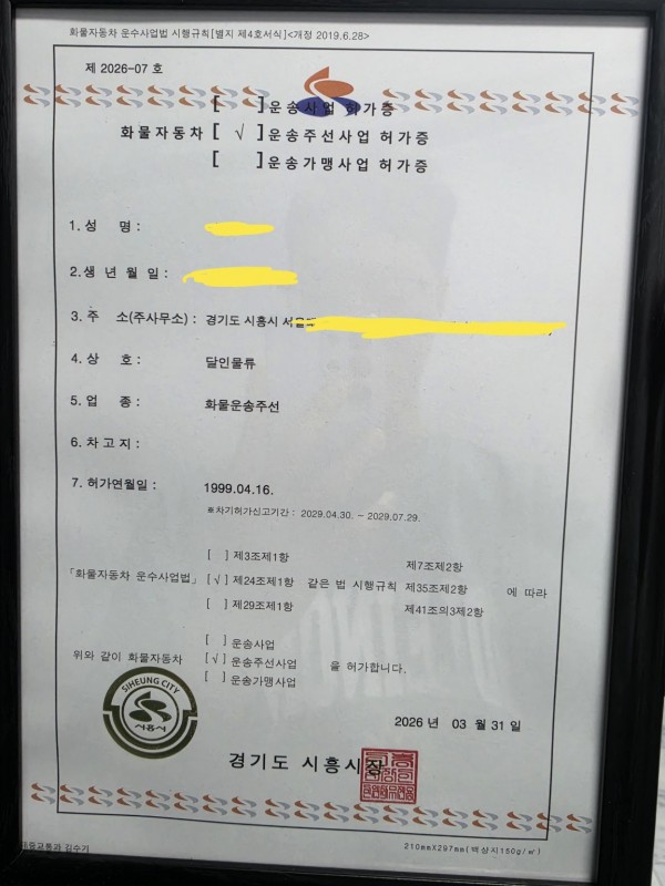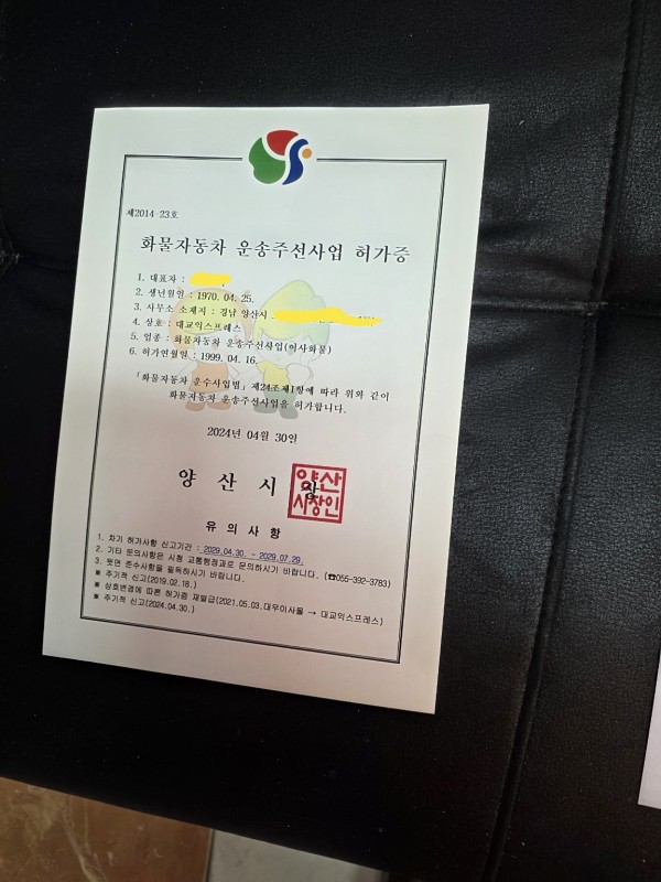경남 양산의 주선사업 허가증을 경기 시흥 소재의 대표님께 소개 시켜 드렸습니다...